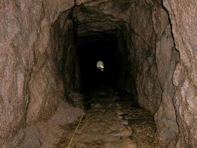 Fortunately just a few feet later things are back to normal. That is... nice solid granite walls and ceilings:-) If you look closely you can just make out Larrys hat, shoes, and legs off in the distance. Just follow his measuring tape.