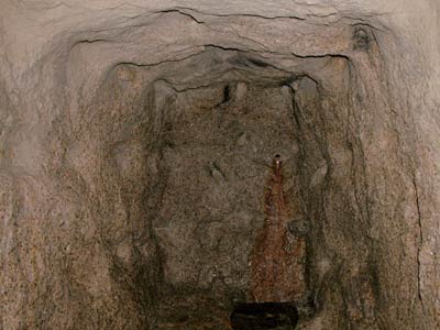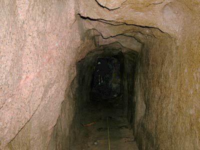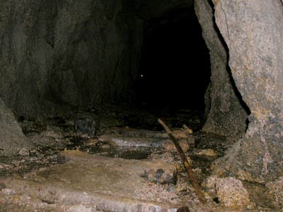 1,166' into the tunnel on the left is a little side hole about 7' deep. Perhaps a test? A place to store stuff? Don't ask me!