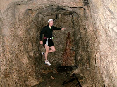 Larry at the end. This photo also gives some perspective as to the overall size of this area of the tunnel. Most of it was just a little shorter than this. In fact Larry bumped his head twice on the way out:-)