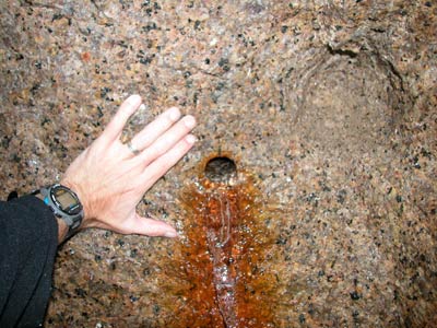 ...but I am told that it tastes great! In fact considering that it has been flowing for over 100 years that is not a very big stain! When we were there, despite three good days of rain, the flow was like what you would have if you were to dump out a gallon of milk. Those that visited last week said it was coming out about 5 feet. I have heard reports of it shooting out 15 to 20 feet.