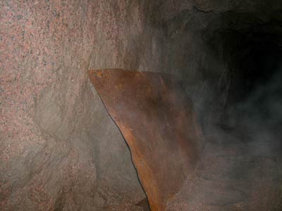 At 700' you come upon a blast shield. The miners would get behind this to protect themselves from the rocks they were blowing apart with dynamite. Makes you think we are nearing the end and the articles in part one about the tunnel being 800' are correct, doesnt it? At least you know it goes a little farther however because you can see Larrys tape heading off to the left.