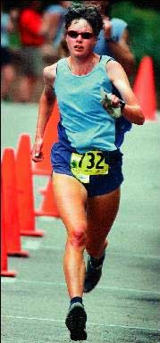 It was a great exciting race. I was just happy that I could keep up with someone like that. Mudge, 33, of Tavistock, England, finished fourth overall and set a 30-34 agegroup record time of 4:19:38. She broke the 15-year-old mark by 16 minutes and 56 seconds. But Mudge was disappointed. Looking at the times last year, Mudge said. I thought I had a stiff chance of winning. Larson came in seventh overall. Ilgen said it is rare for this race to have two women in the top 10. Thats amazing, Larson said. Its got be one of the most competitive races in a long time. Larson finished at 4:22:29, 19 minutes and 24 seconds faster than her winning time last year.