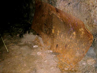 At 700' you come upon a blast shield. The miners would get behind this to protect themselves from the rocks they were blowing apart with dynamite. Makes you think we are nearing the end and the articles in part one about the tunnel being 800' are correct, doesnt it? At least you know it goes a little farther however because you can see Larrys tape heading off to the left.