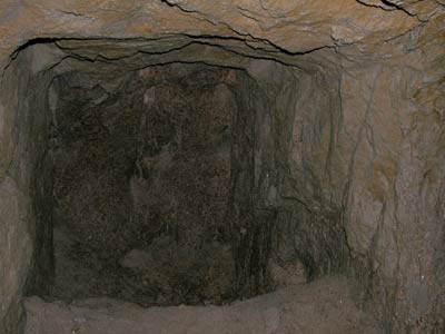 1,166' into the tunnel on the left is a little side hole about 7' deep. Perhaps a test? A place to store stuff? Don't ask me!